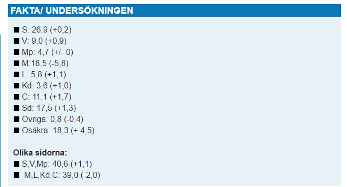 Nu är det här bara en mätning, men det moderata fallet är för markant för att seriösa bedömare skall kunna avfärda det som något slags mätfel. Det är även värt att notera att andelen osäkra ökar rejält och att Centern för första gången på många år går över 10%.