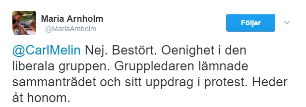 Liberalernas partisekreterare Maria Arnholm reagerade raskt på Twitter och partiledaren Jan Björklund vaknade så småningom ur sin Törnrosasömn och avgav en ogillande åsikt. På den liberala hemsidan hittar vi texten ”Det behövs fler liberaler i en värld där extremister och populister breder ut sig”. Det är något förvånande att liberalerna inte mer tydligt kommunicerat detta till sina lokala kollegor i Hässleholm.