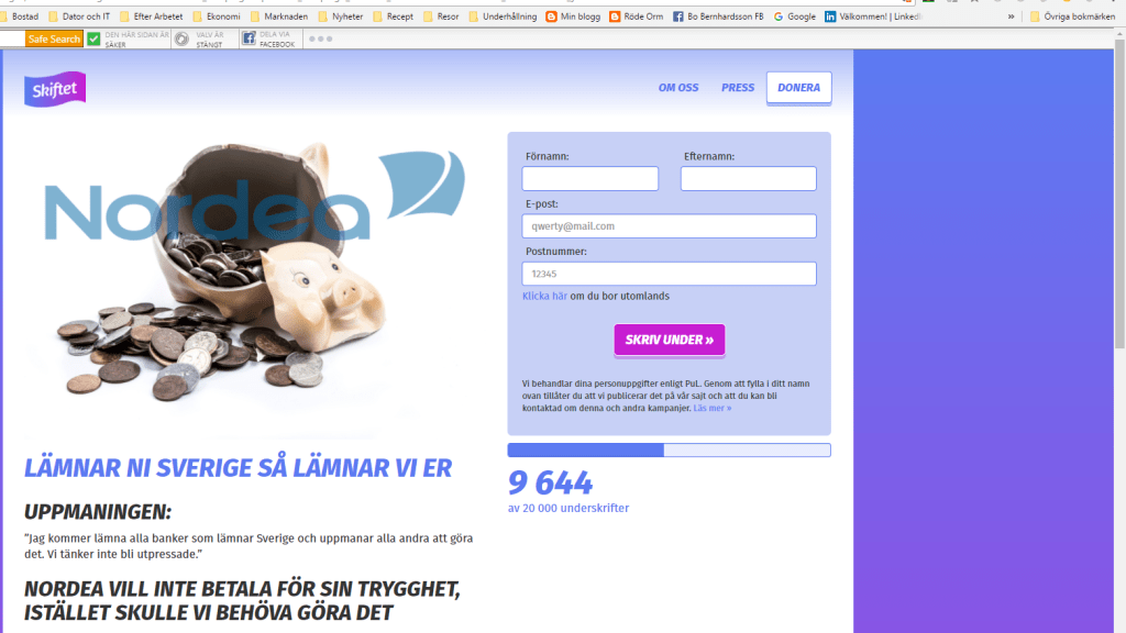 För egen del kommer jag att lämna Nordea. Och jag uppmanar andra med affärer i banken att göra detsamma. Här är en länk till den behjärtansvärda kampanj som pågår.